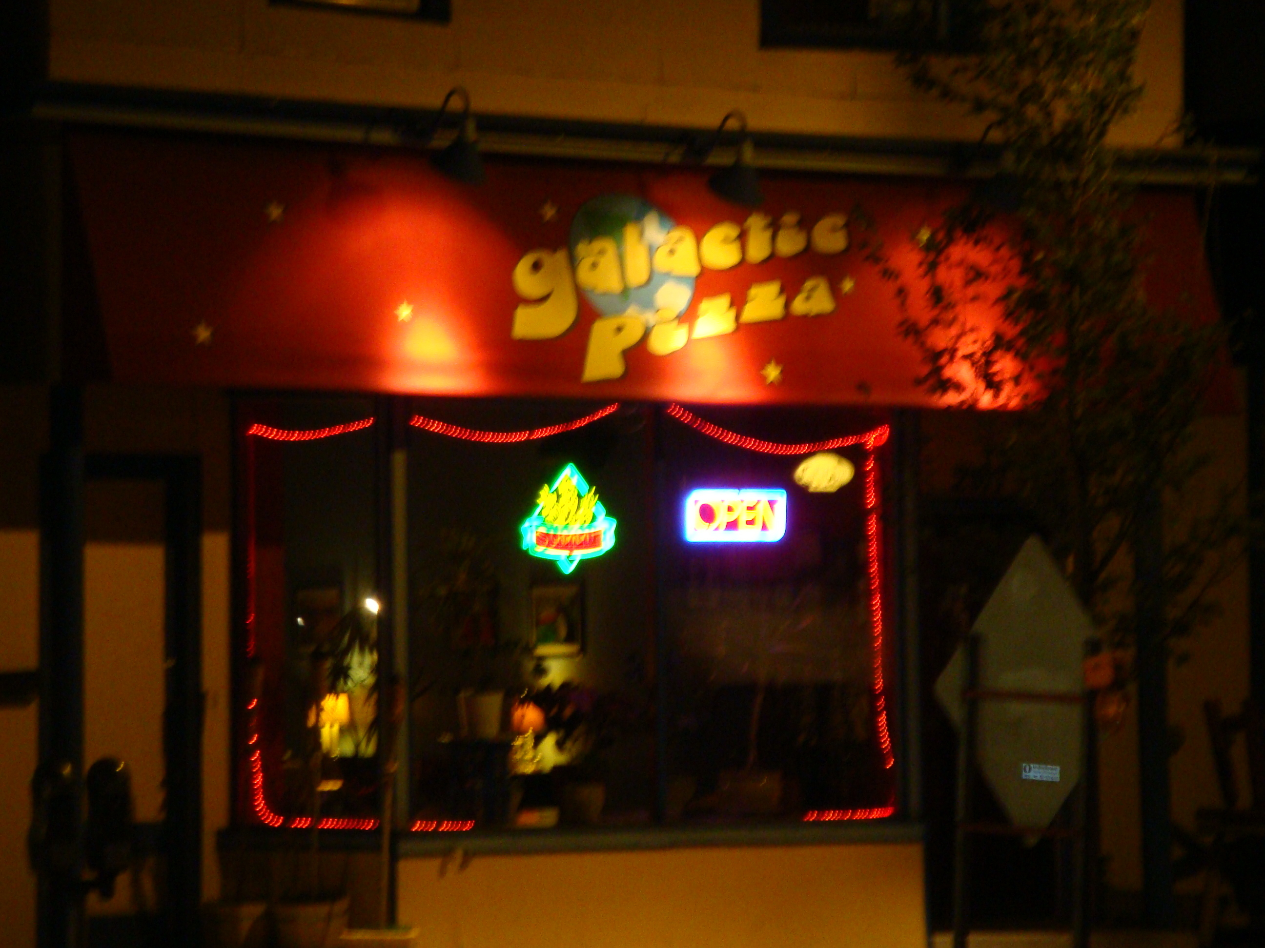 Galactic Pizza, a pizza place whose delivery kids wear superhero costumes and drive tiny electric 1 person cars. Kid you not. It rules.