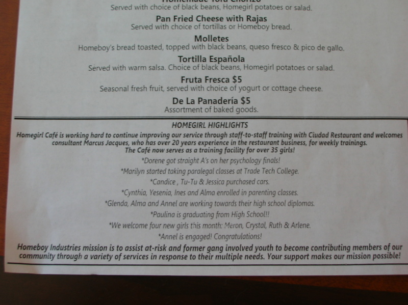 The place was great, and packed with businessmen and couples, not to mention to people shopping at Homeboy Industries. It takes a village. A hungry village.