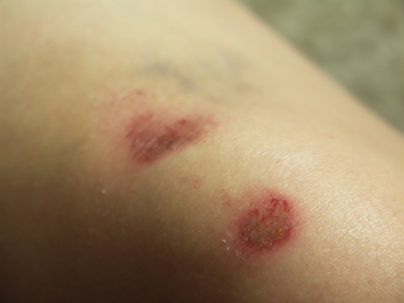 The scrapes were turning into scabs. One of the scabs was vaguely heart shaped.