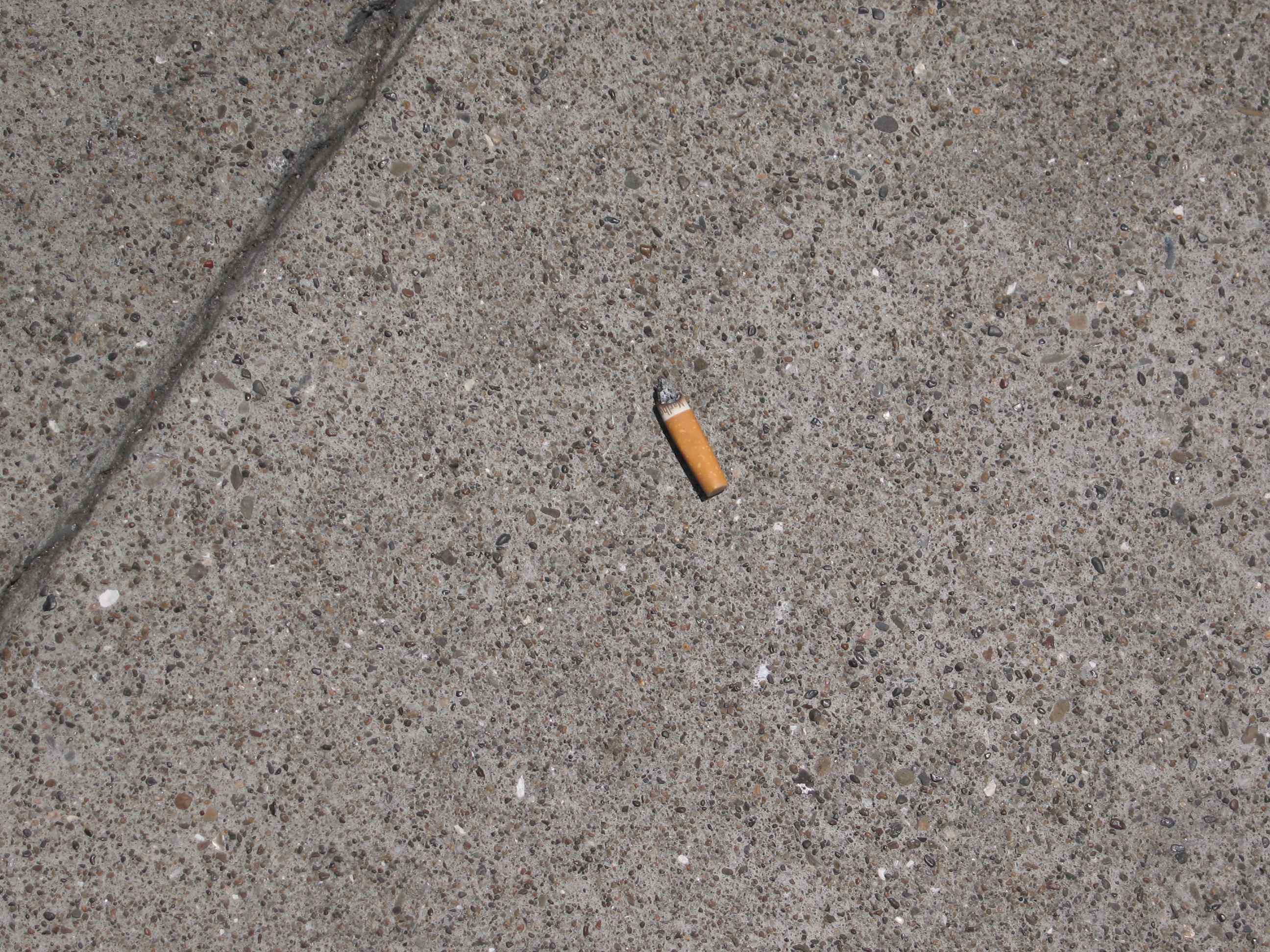 download file Nobody ever really thinks about what this means. And what is means, well... it's a cigarette butt. And it's in the middle of an otherwise featureless area. It's an oasis of trash in a boring landscape. Let's make things interesting. |