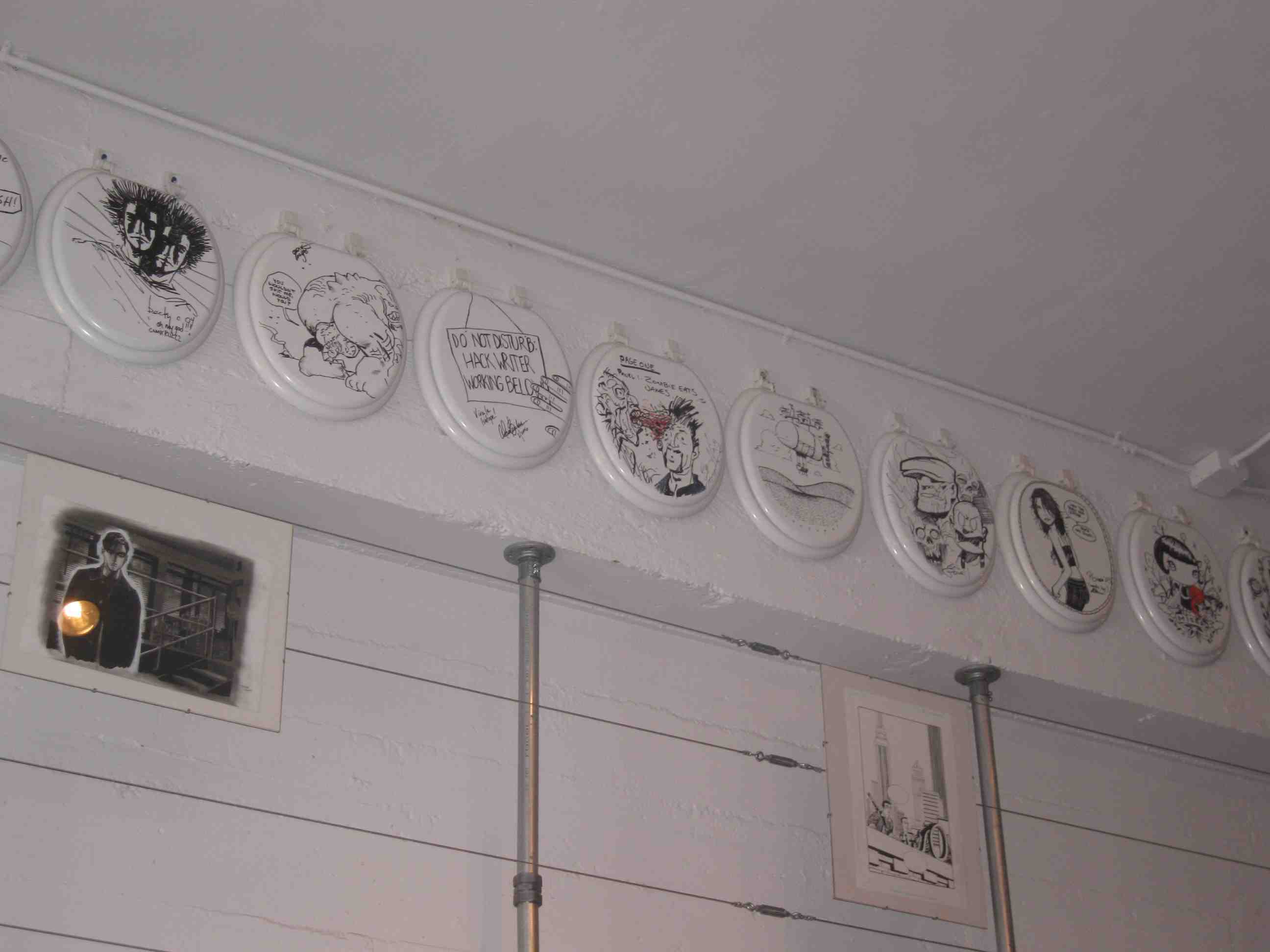 And the best part was the toilet seat. So, whenever an artist comes into the shop for something in store...they are forced to draw on a toilet seat.