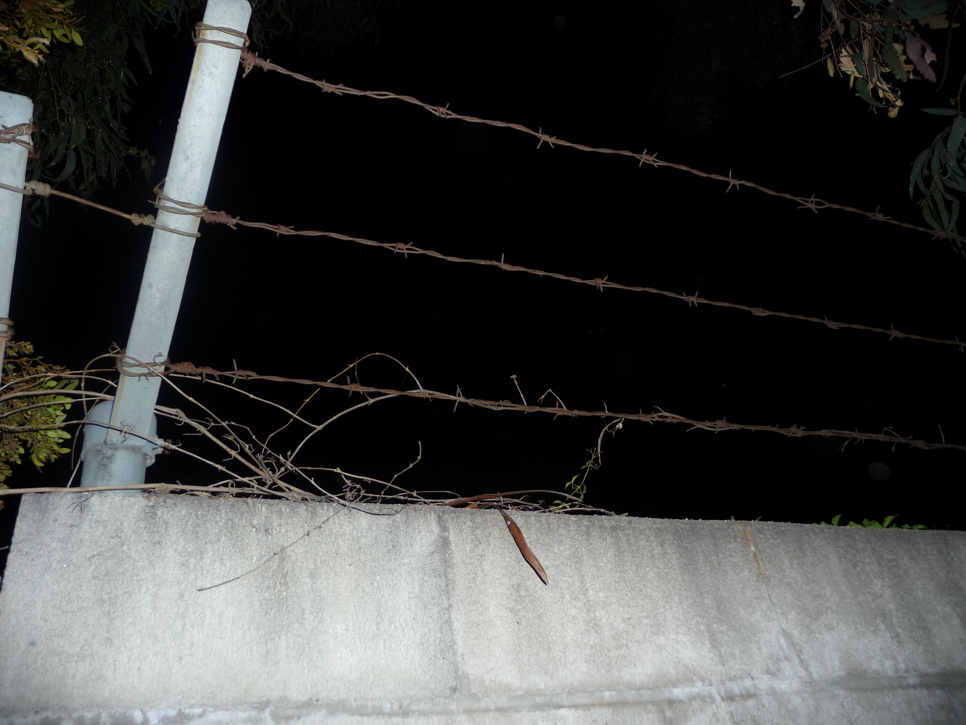 I briefly toyed with the idea of climbing over the fence on this side, but copious amounts of barbed wire dissuaded me. Time to go around to the other side.