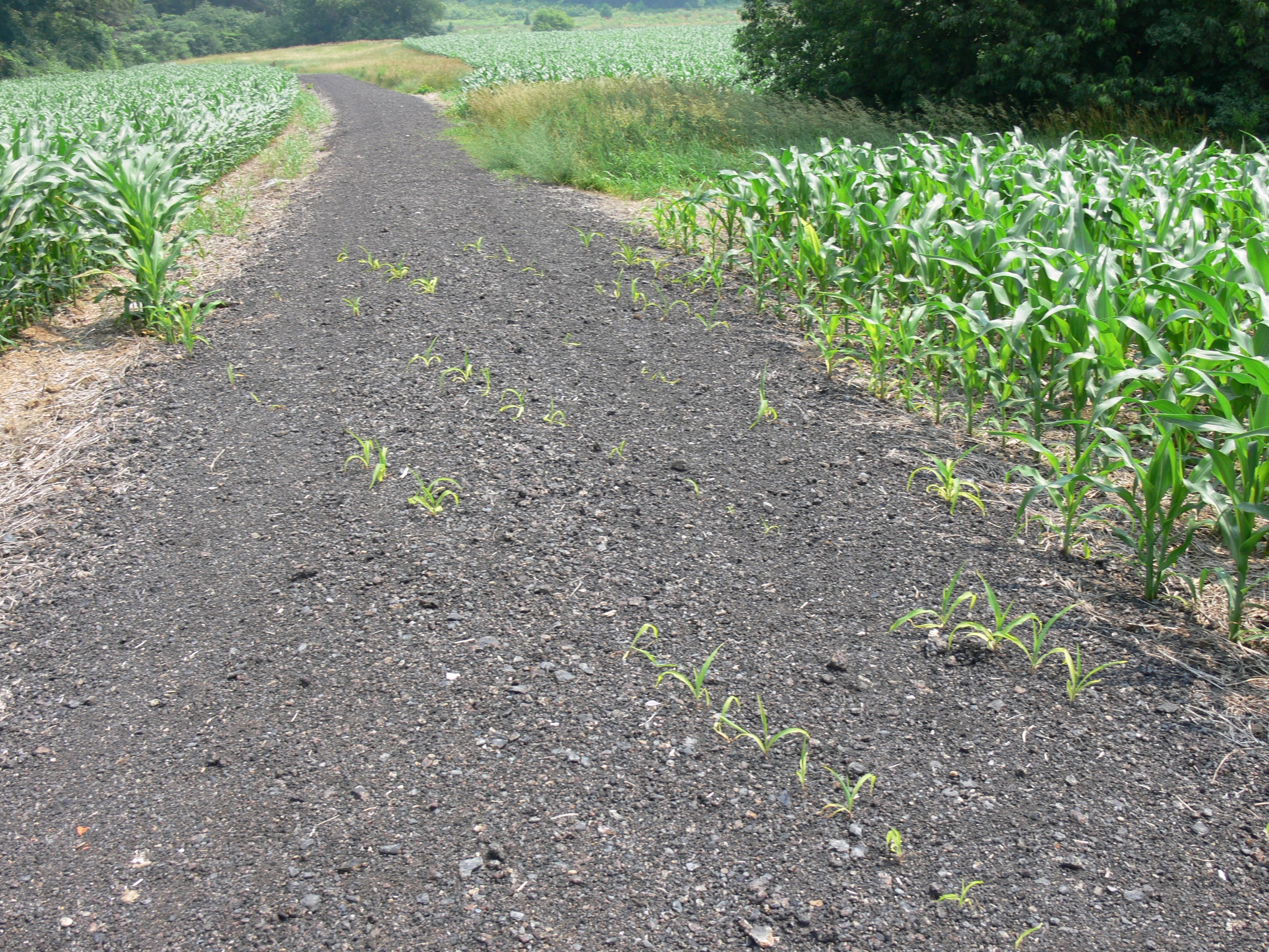 Sometimes they sew the corn right into the pathway, and it tries to grow but doesn't do very well.