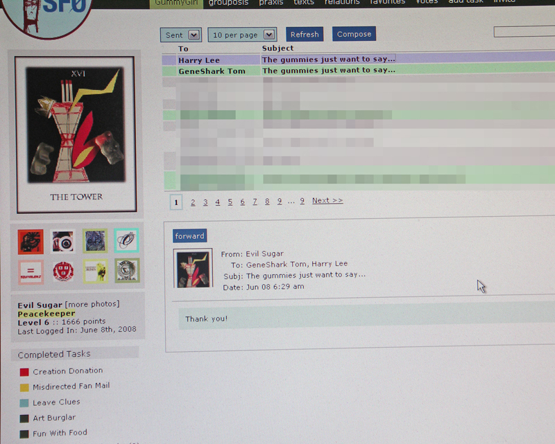 Those gummies are such suck-ups. They insisted that the best people to thank (for no particular reason) were Tom and Harry. Those bears would do practically anything for points.