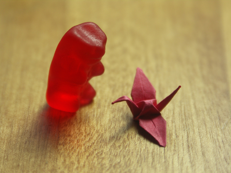 This was sad. Evil Sugar told the red gummy not to get attached, but what can you do? The crane was red, the bear was red, it was unavoidable. Sad, though. Really sad.