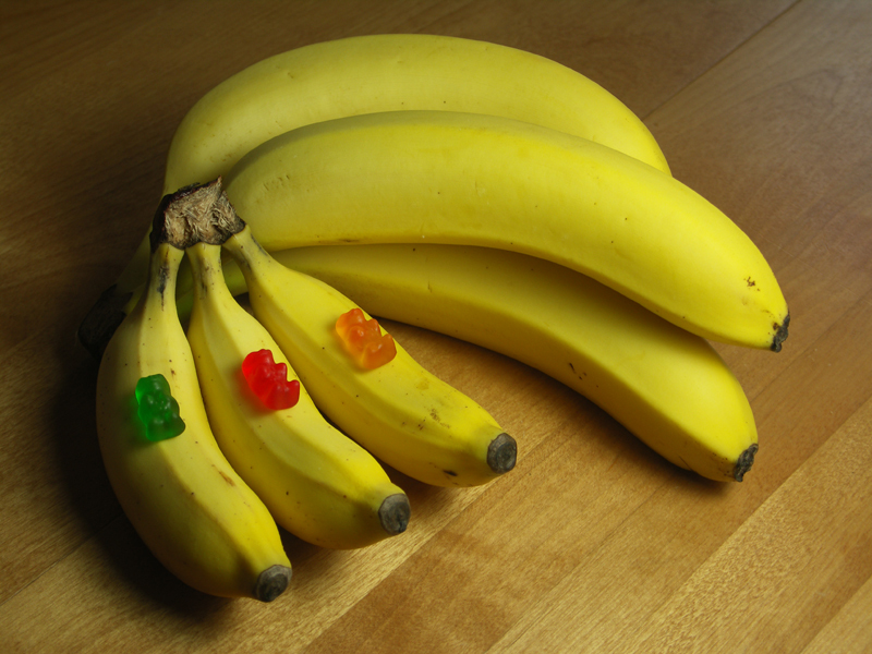 download file Evil Sugar bought normal bananas, but before we could get out of the store, the gummies spotted these baby bananas and insisted that we get some of those too. God, they tasted aweful. Who buys these things? It must be that little kids think they're cute and con their parents into buying them or something. Blech. |