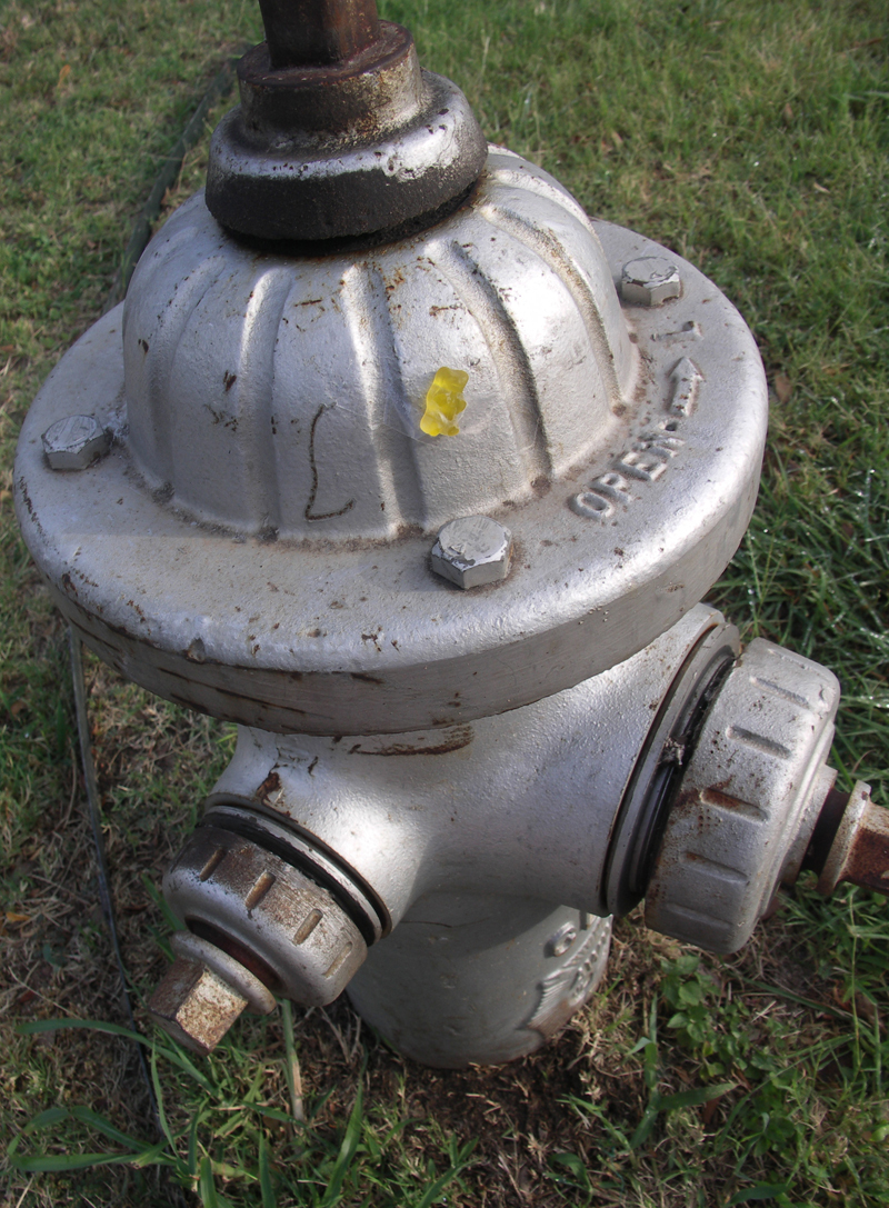 Gummy bear, taped to a fire hydrant -- A TRIBUTE TO THE MAYOR OF CLAYCORD. Note that the gummy bear is taped in a location that does not interfere with the normal functioning of the fire hydrant.