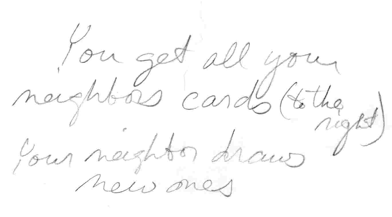 My mother mostly made cards that directly affected game play. Later on, she realized the full potential of the game and used the cards to get her children to entertain her.