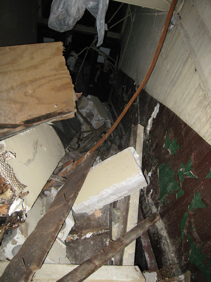 Peeling paint, unstable footing, and a monitor at the bottom. Also Dax on the left and zer0gee on the right, if you squint hard enough.
