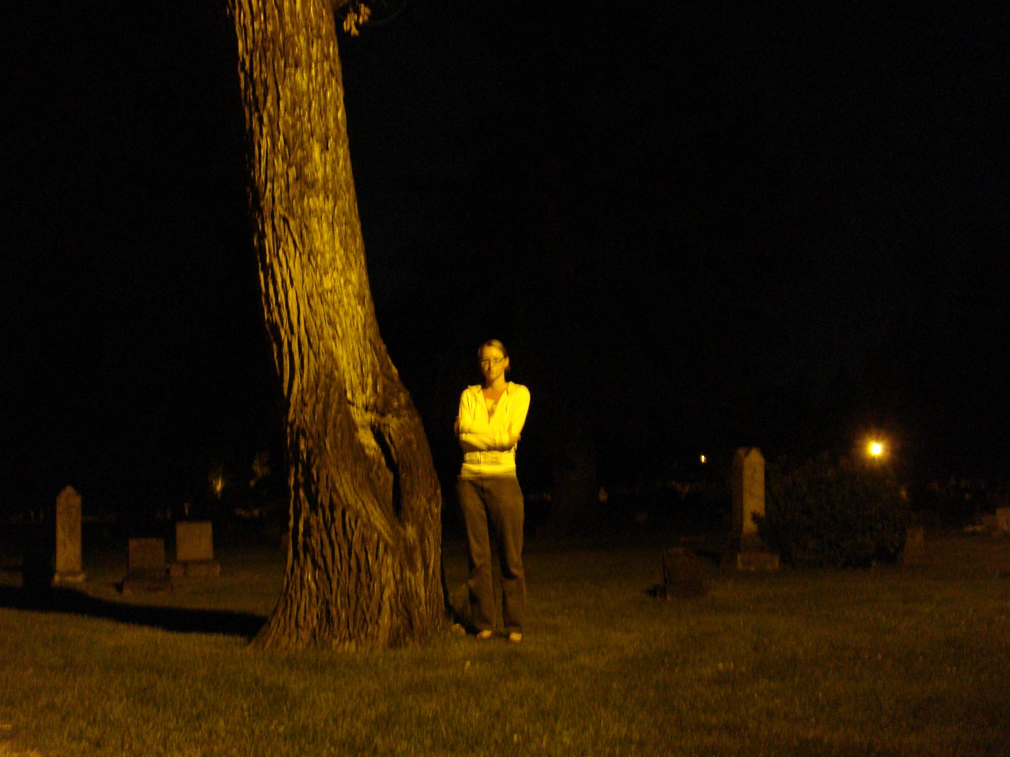 Cara Bear at tree in Grandview Cemetery