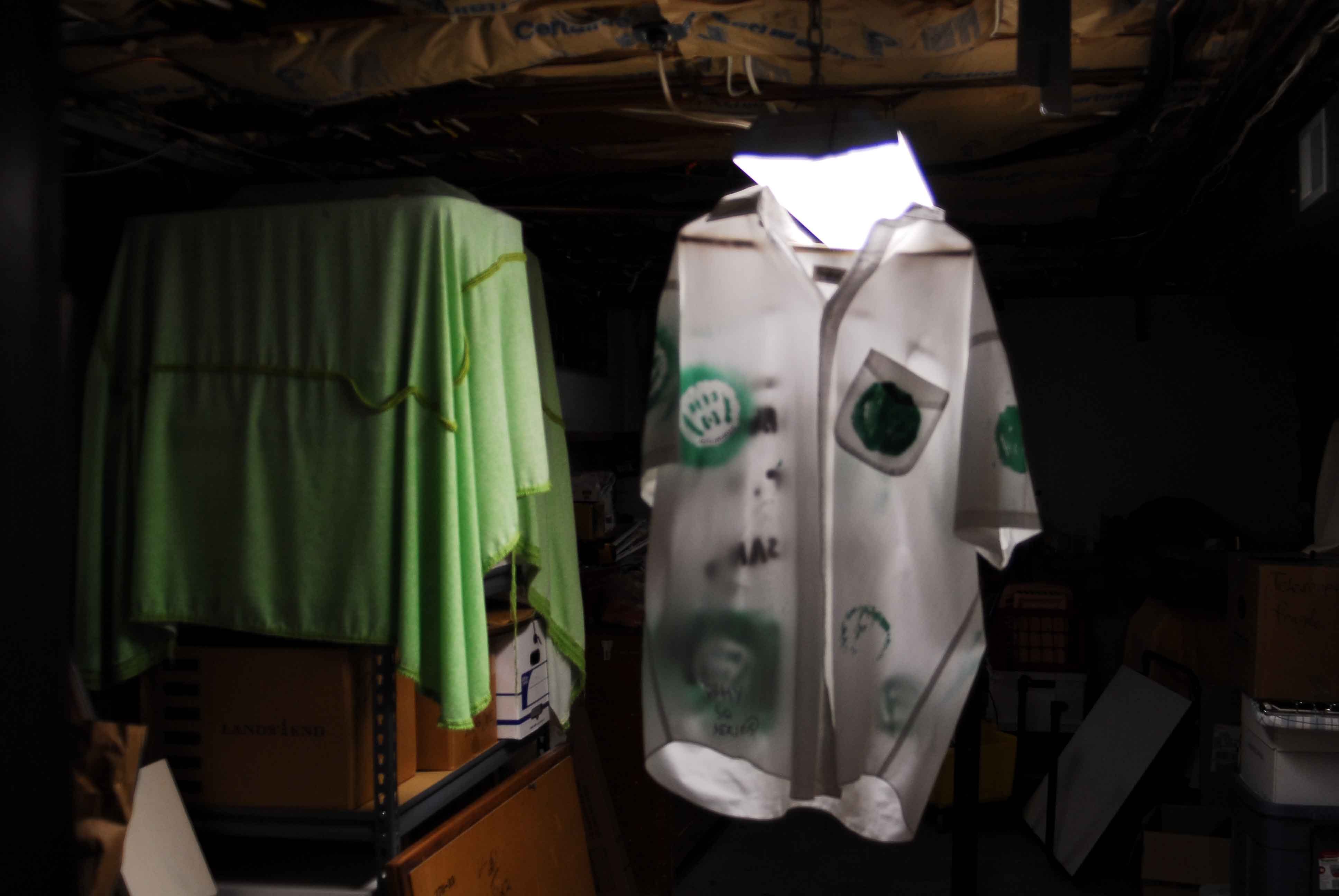 And there hung, in the factory, a beautiful green, black and white shirt.