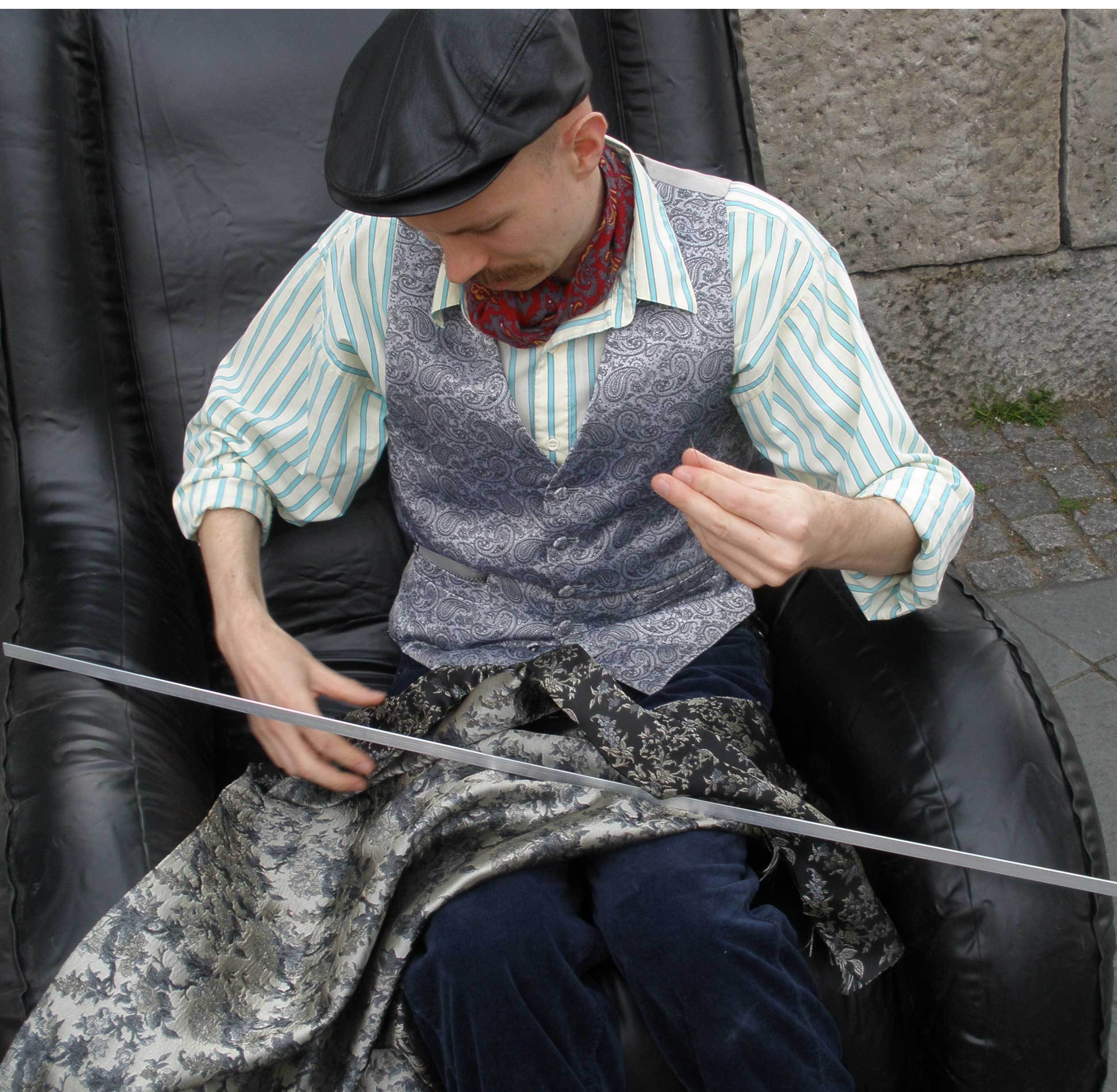 download file Luckily no one came early. The sewing didn't take very long, but I was glad not to be too distracted while it was in progress. Amazingly, I didn't prick my finger even once. It probably helped that the fabric, bought that morning down the market, was fairly lightweight. And that it matched my waistcoat. |