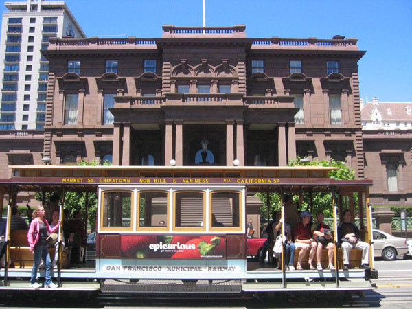 I don't know the significance this large, neat-looking edifice, but I caught a cable car going by as I took this picture. More cable cars follow.