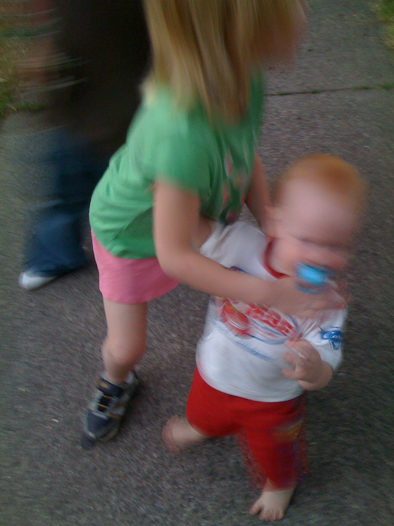 my big sister got involved at this point, jumping on me and showing me off to other kids