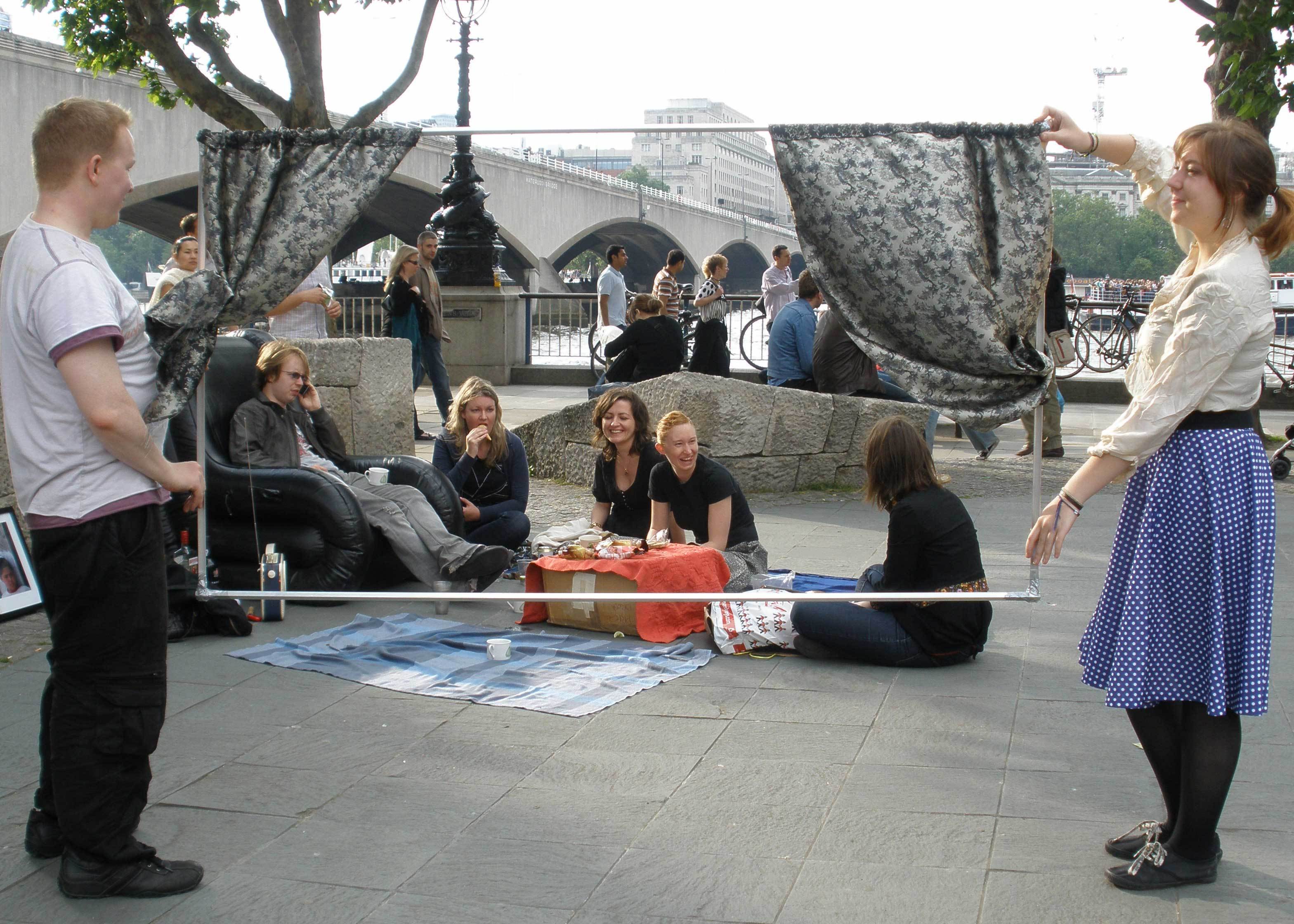 download file More people turned up. Sadly, this meant that no more strangers came 'inside', but plenty smiled as they passed (no doubt they wished they too could have a living room like this). And it was after all nice to have more help working on the gin. |