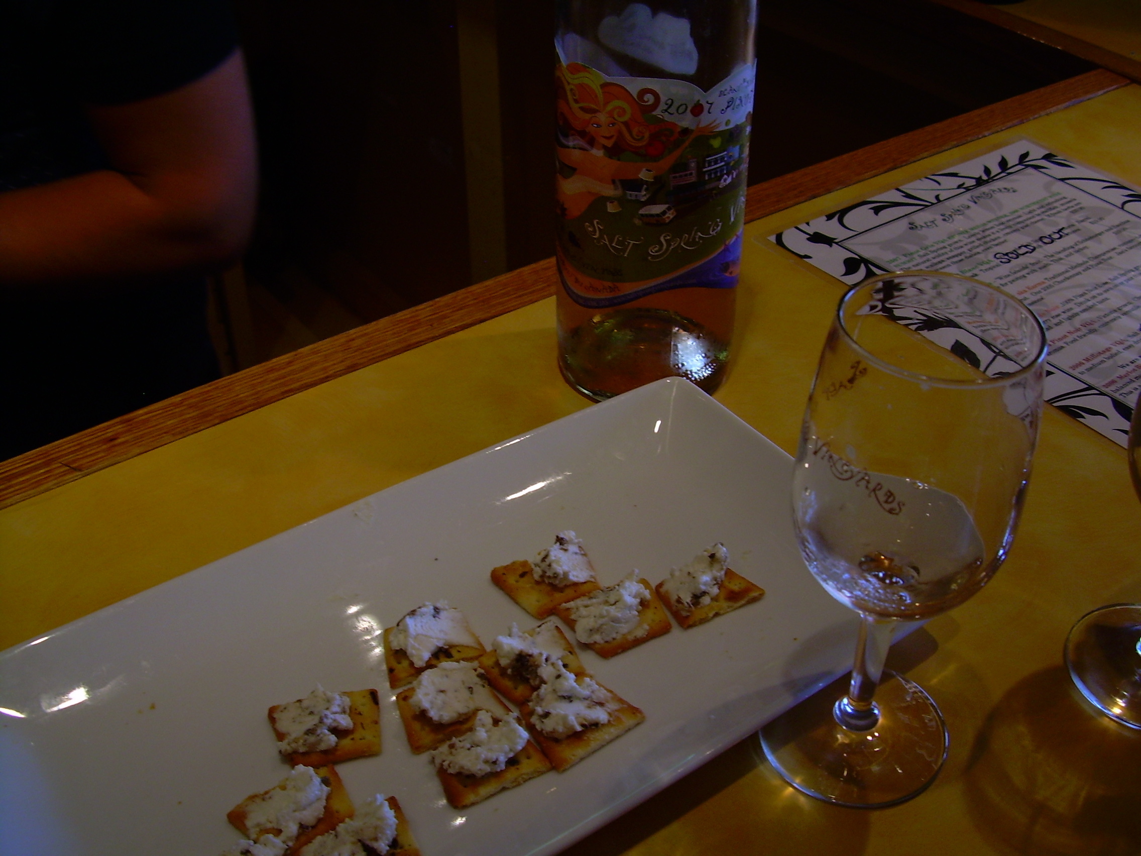 More wine with goat cheese. They also let us fill our water bottle, more importantly, since we were a bit dehydrated and the wine didn't help.