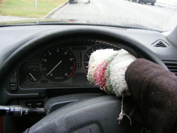 It turns out that this is NOT a safe or effective way to steer this car. The second time up on the curb taught me this for sure.