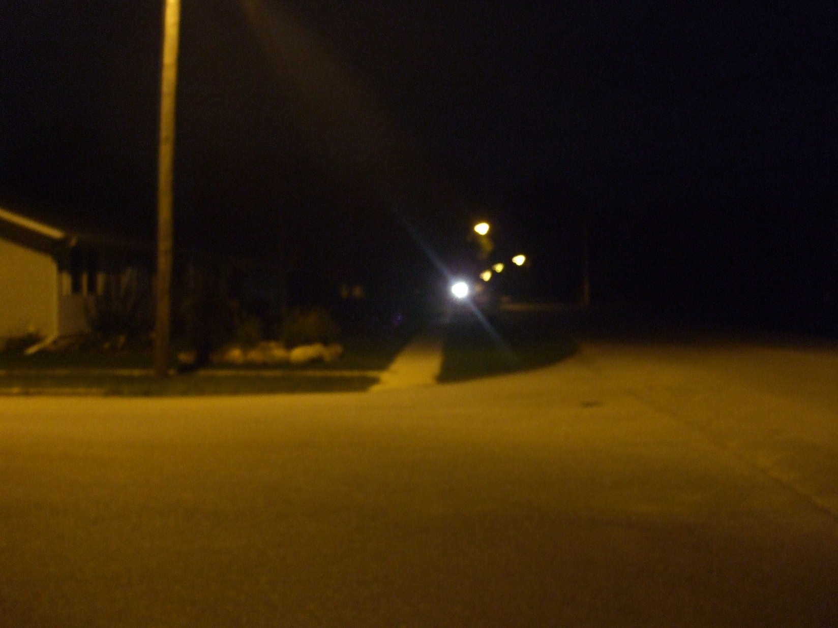 download file We've just left our road to cross Giddings Street, the spine of Kelley (the only road in or out of the town). That light is a car coming, probably someone coming home from Ames since we rarely get people driving through. |