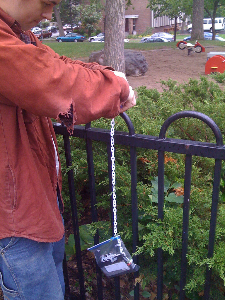 download file game day: JJason, Eleanor, and I hit the bonus checkpoints. Here's the one that was supposed to be at Stevens Square Park--I'm told it wound up in the trash! Damn, city! What'd we do to you?? |