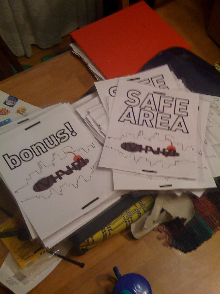 download file these signs were laminated for weather proofing, punched and set up for zip tying, and intended to be nice and clear for players. All of the bonus! signs got put up, some of the others got put up, many did not. |