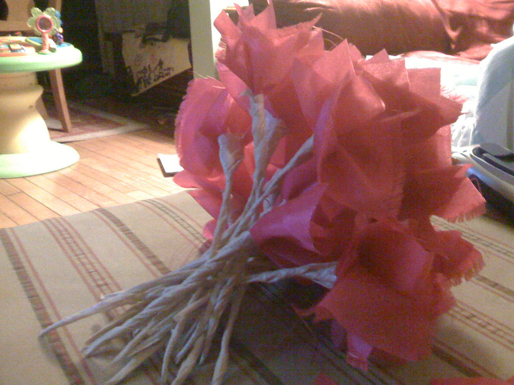 these are some of the silk flowers made for people who reached the end. I also enlisted Kannon to help make some and I think between us we got about 90-100 done.