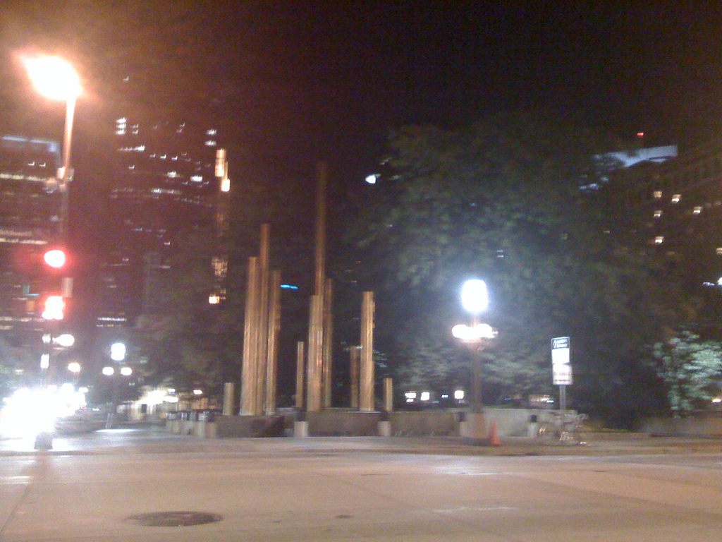 this is above the fountains at the finish. Just past those columns is a pit, with Peavey Plaza and fountains below.