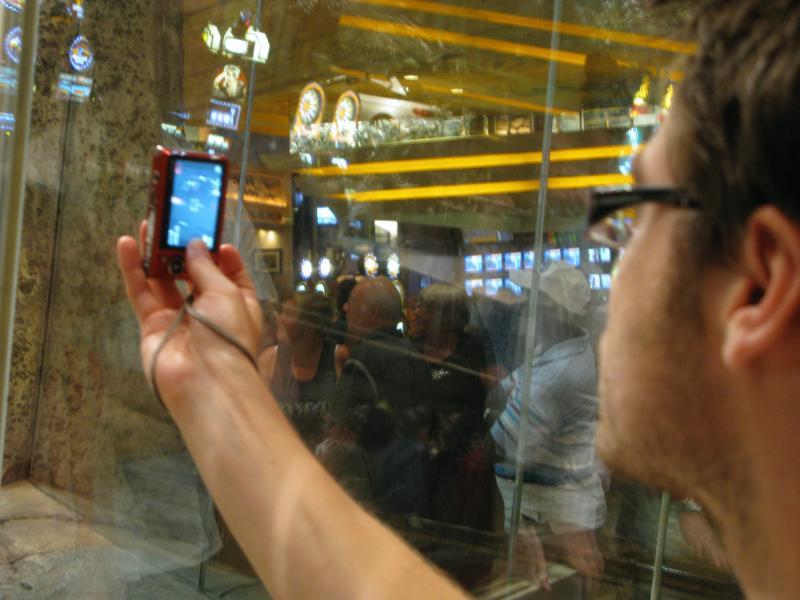 He's taking a picture of a lion.