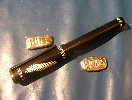 download file Pewter tokens with "Smile" and "hope" written on them, and a fine New Zealand pen, complete with silver fern. Took me 30 minutes to take this shot, as I had never learnt how to use the micro focus on my camera. Now I know and will have LOTS of fun using it. |