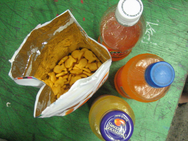 Goldfish! Orange Mango juice, Minute Maid, etc