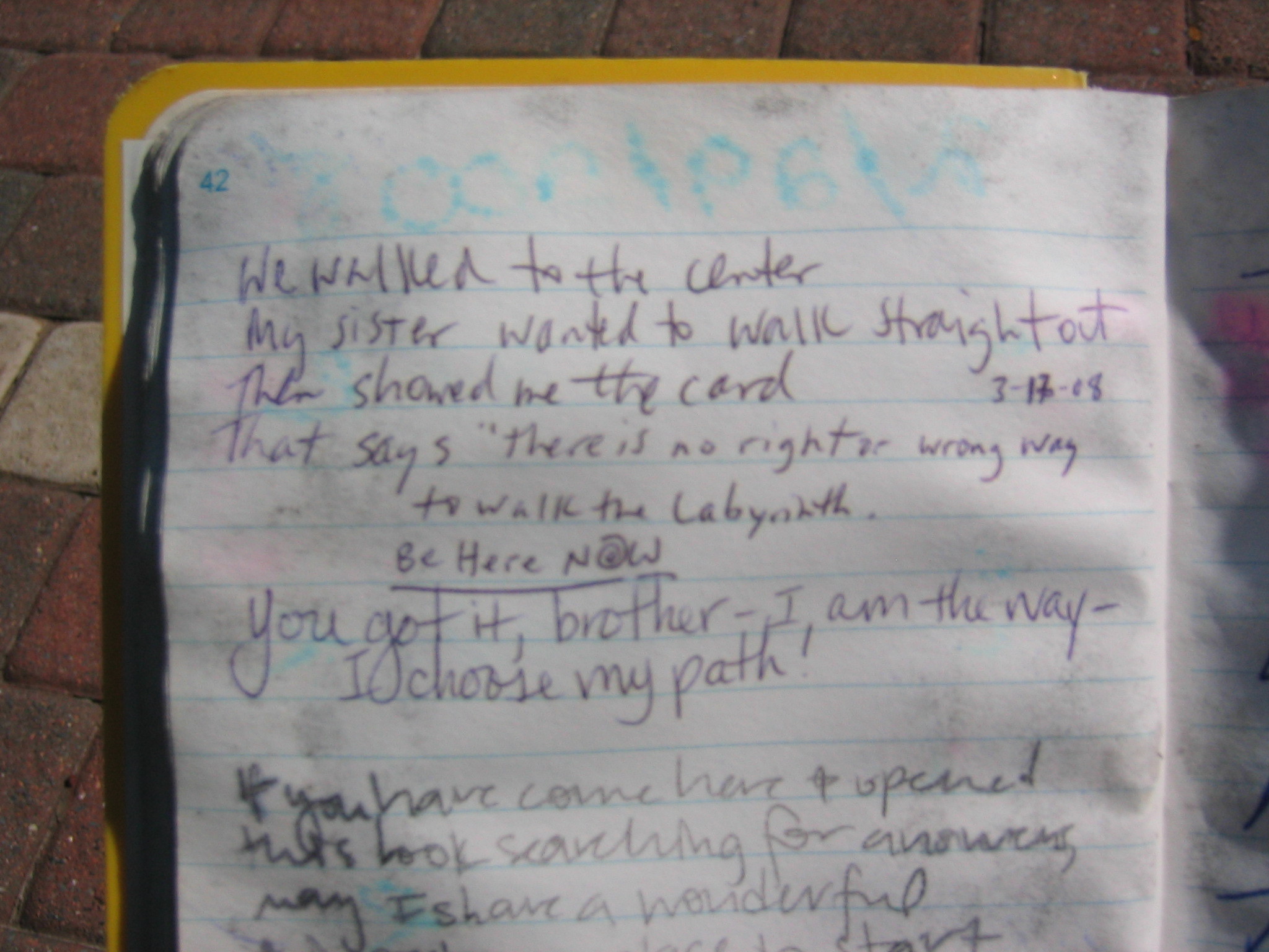 it was filled with prayers for loved ones in the hospital, messages of hope and inspiration, observations about the weather, contemplative statements, and comments about the labyrinth.