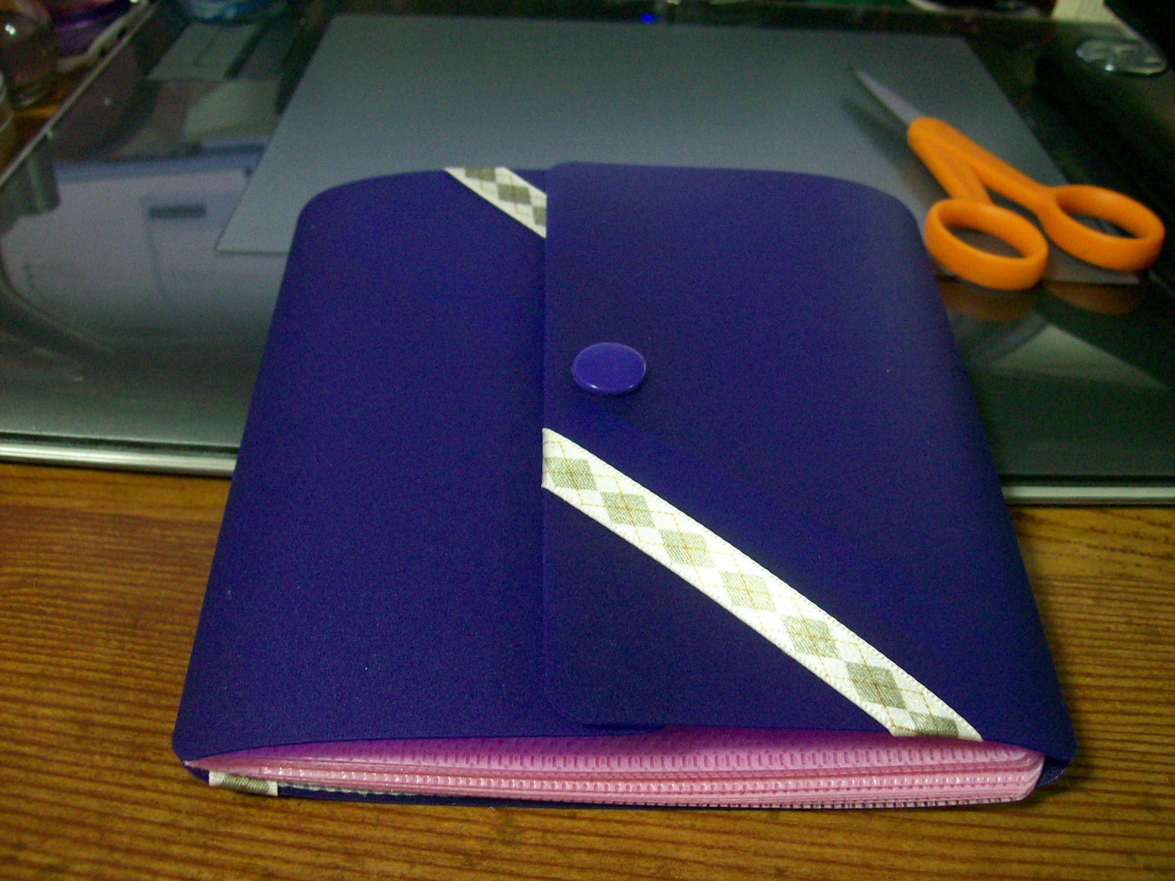 the self-adhesive argyle tape was a lucky find. I was just digging around my immediate desk area, and it was in a bag that I'd dug out of my closet with some random craft supplies in it. It was just enough to decorate the whole book!