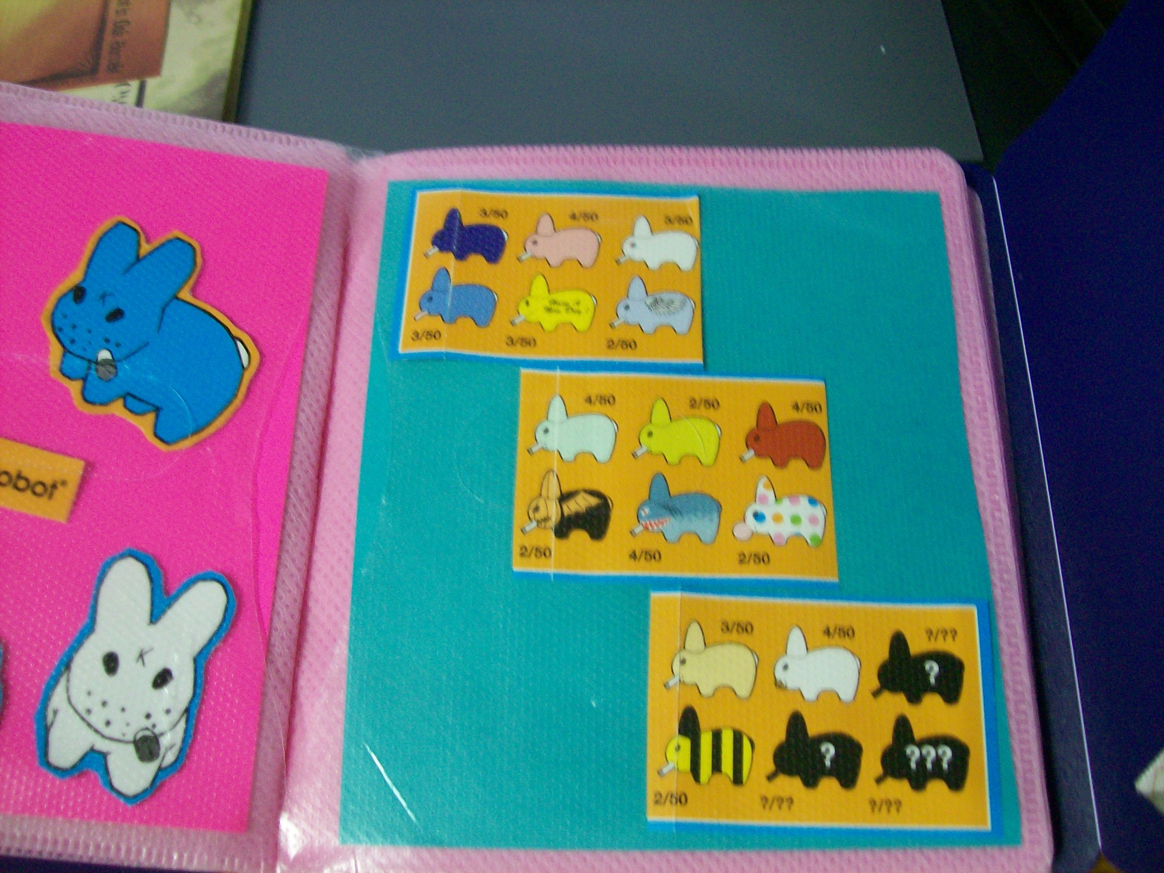 here are the Smorkin' Labbits from Kid Robot. The addition of the teal paper, and taping the list of Labbits onto it made this turn out so much better. I'm glad I dug up that neon paper!