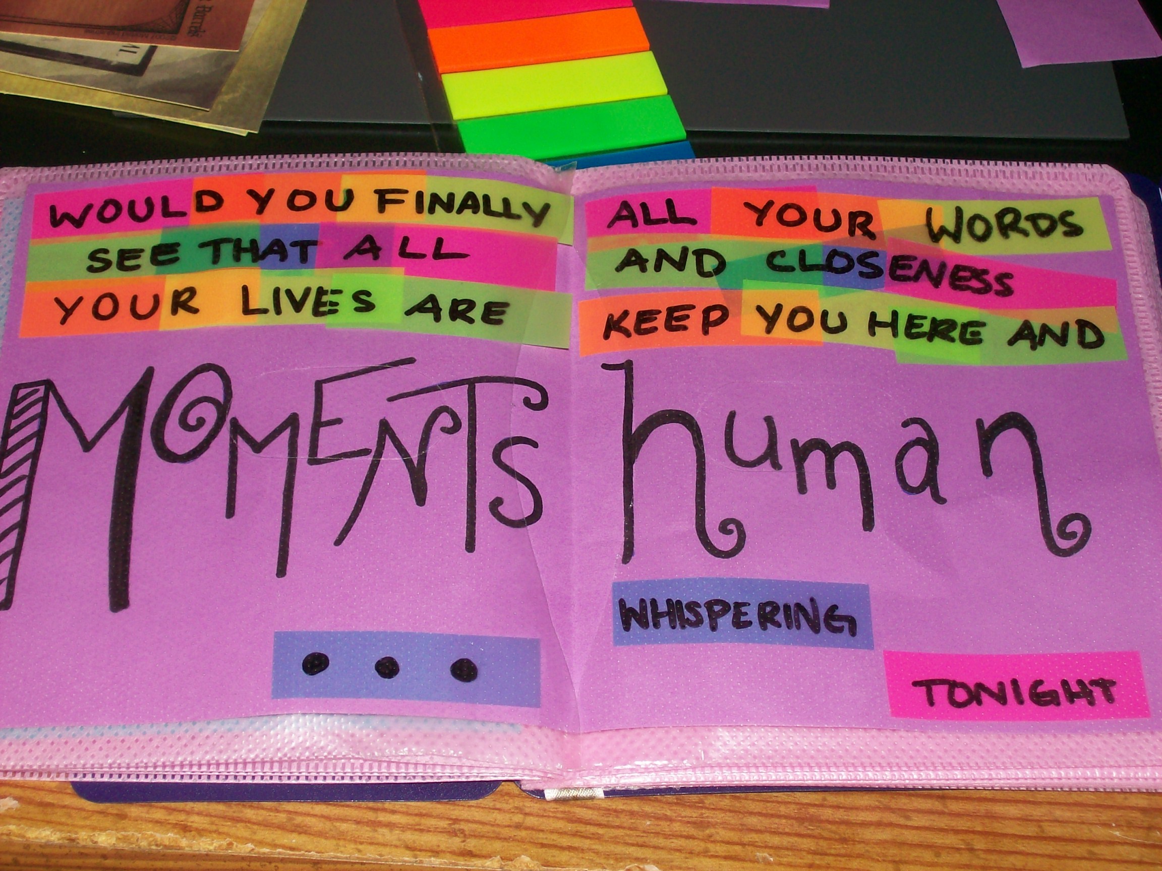 "Would you finally see that all your lives are moments...All your words and closeness keep you here and human whispering tonight." -- Lyrics from the Ludo song "Scream, Scream, Scream"
