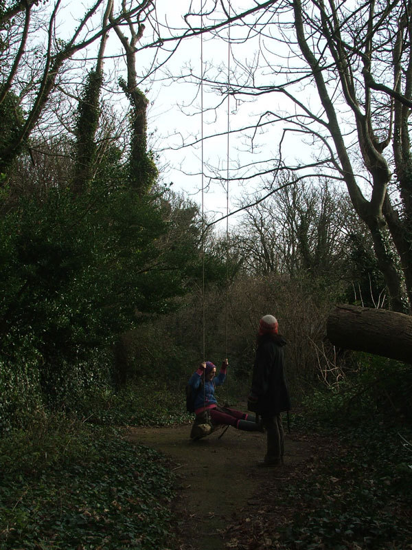 This bit of the old victorian road is what is left. Someone put up a fun swing on the middle of it. The walls on either side of the road are covered in ivy.