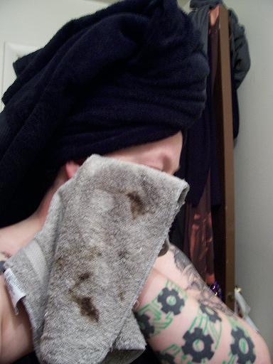 As you can see, this is the washcloth I usually use to wipe excess dye off my skin after I've washed it out of my hair.