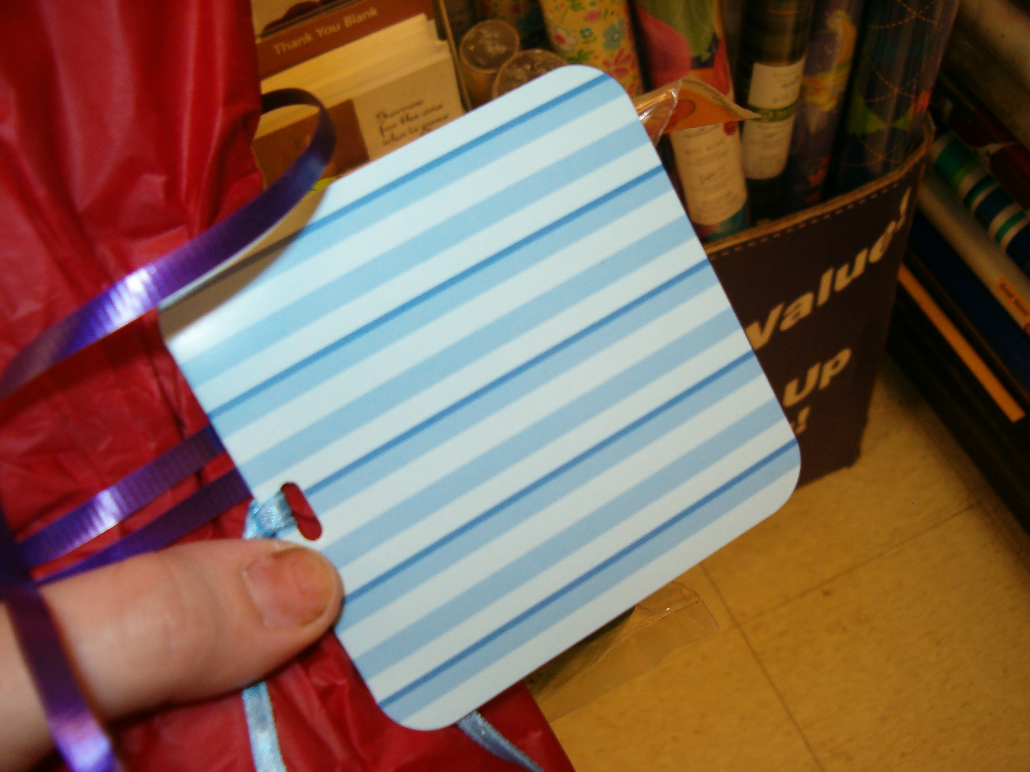 Inside it, I wrote, wit my left hand, "Have a good day! from, unknown"