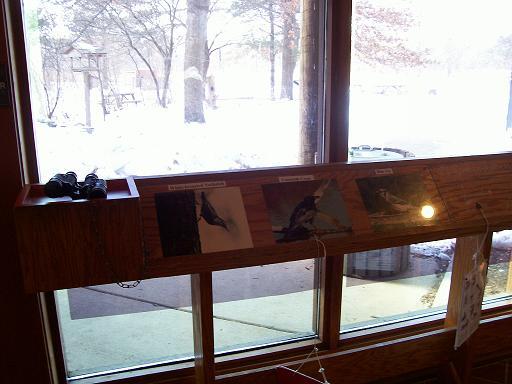download file There are many birdfeeders outside this window. Inside, there are binoculars and identification charts. I saw a lot of sparrows, some black-capped chickadees, and two pairs of cardinals. There are speakers in here and you can hear the birds outside. |