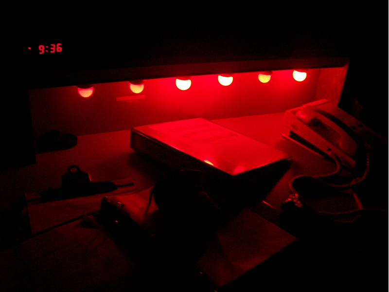 The red light is there because it, unlike white or other types of light, doesn't ruin your night vision.
