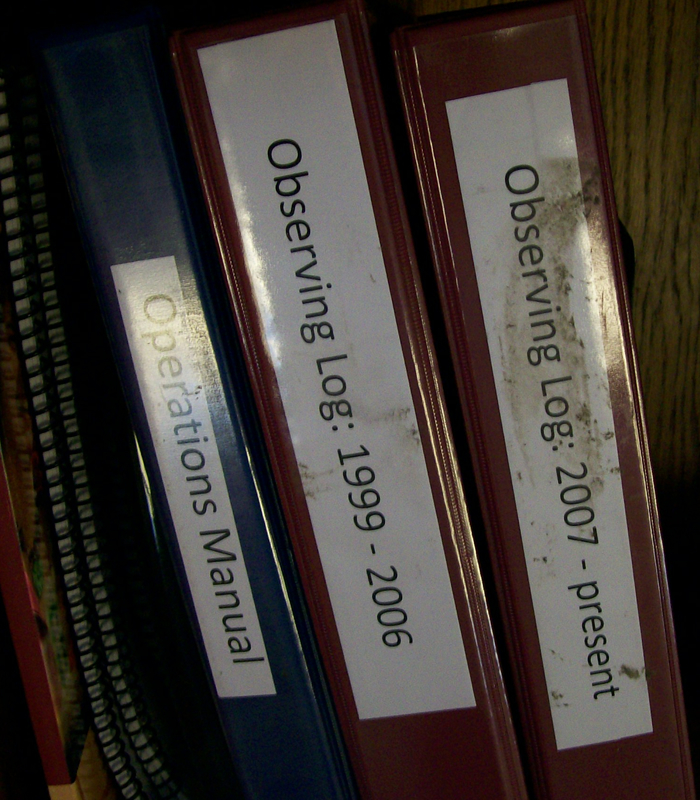 The logbooks where we record the numbers of visitors, as well as what's interesting in the sky each night.