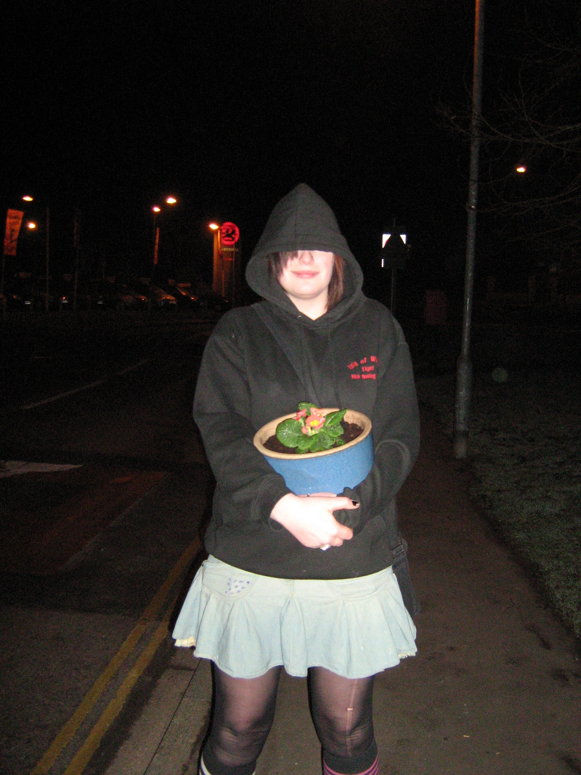 charli attempting to look inconspicuous with her potted plant somehow i don think it'd work?