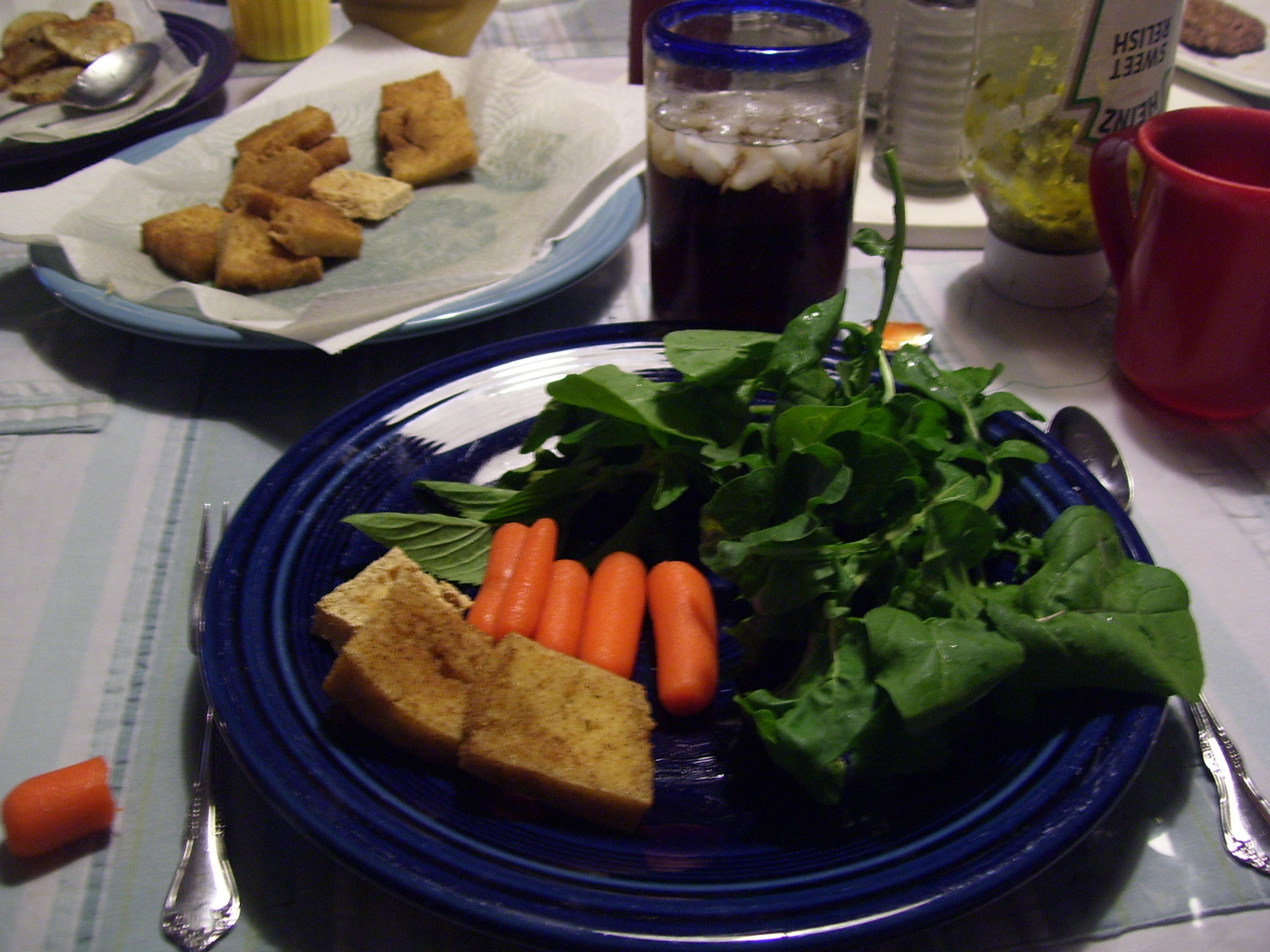 arugula, chinese mint, carrots, and deep-fried tofu. mmm.
