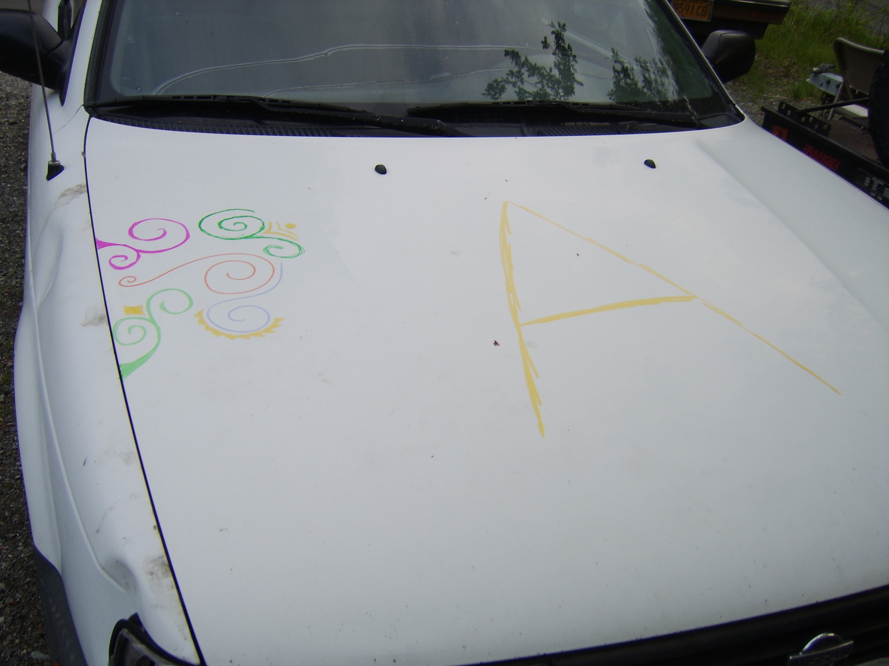 here's the doodles on the front. I like spirals a lot. I like answers. I like having answers, and finding them. The A also corresponds with the Q in the back.