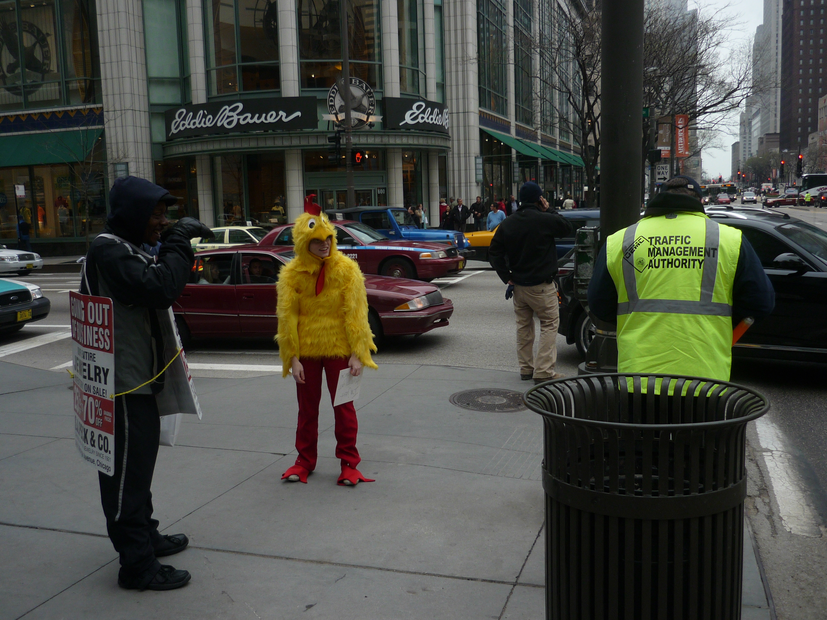 the only two people at this intersection who even cracked a smile, going out of business sandwich board man and traffic enforcement guy.