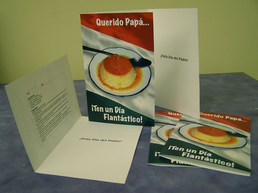 A product to appeal to the Spanish language crowd. An added bonus: a flan recipe on the inside cover which can be cut out and added to your recipe box.
