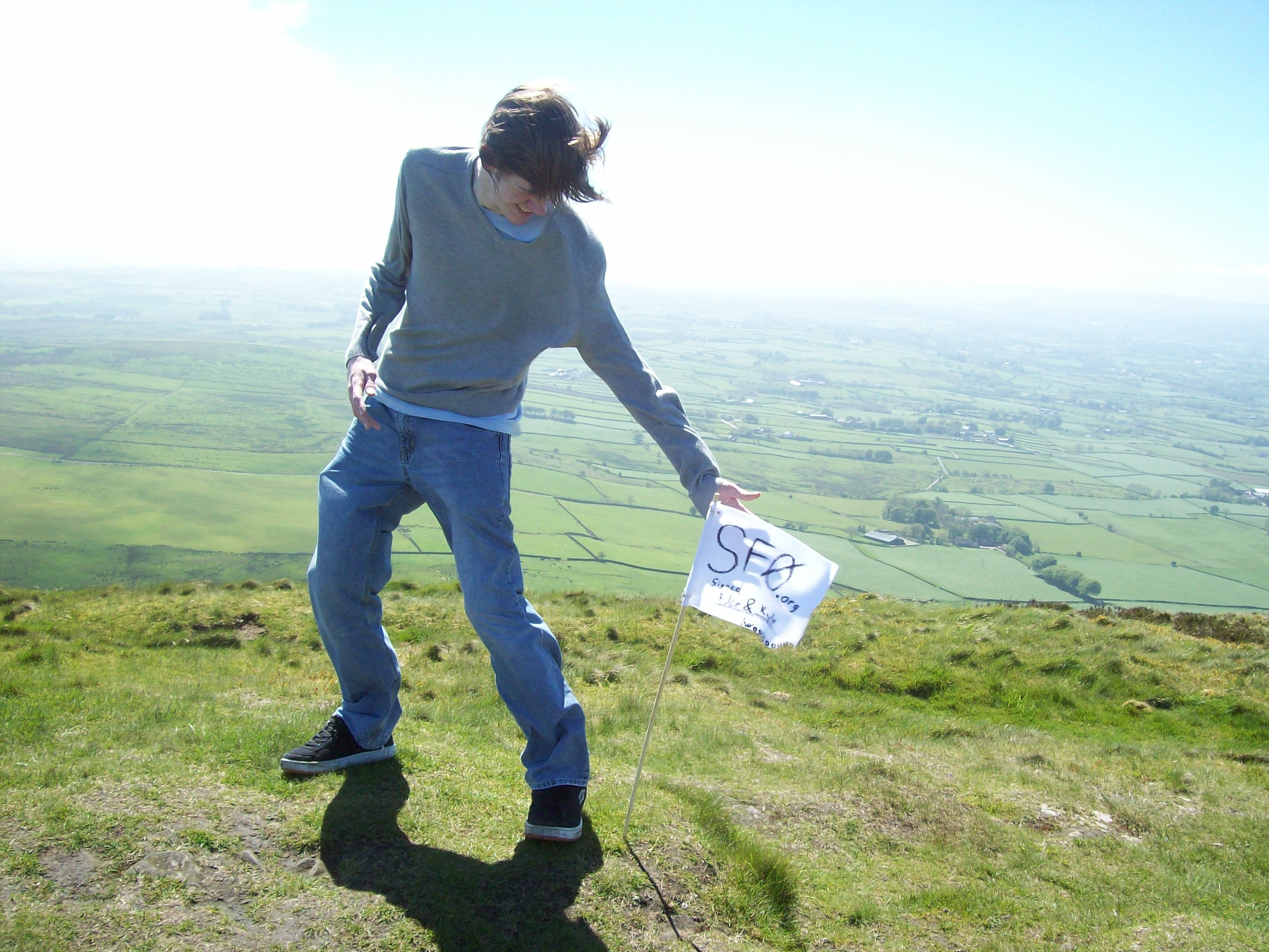 Having a quick-draw competition with the flag.