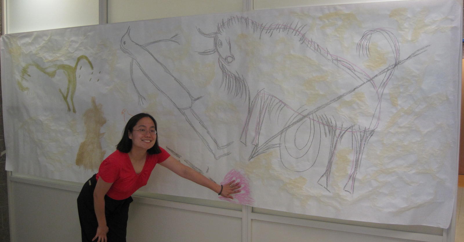 This handprint is set at the focal point of the shaman panel. The man's feet and the spear that pierces the bison both point to the hand.
