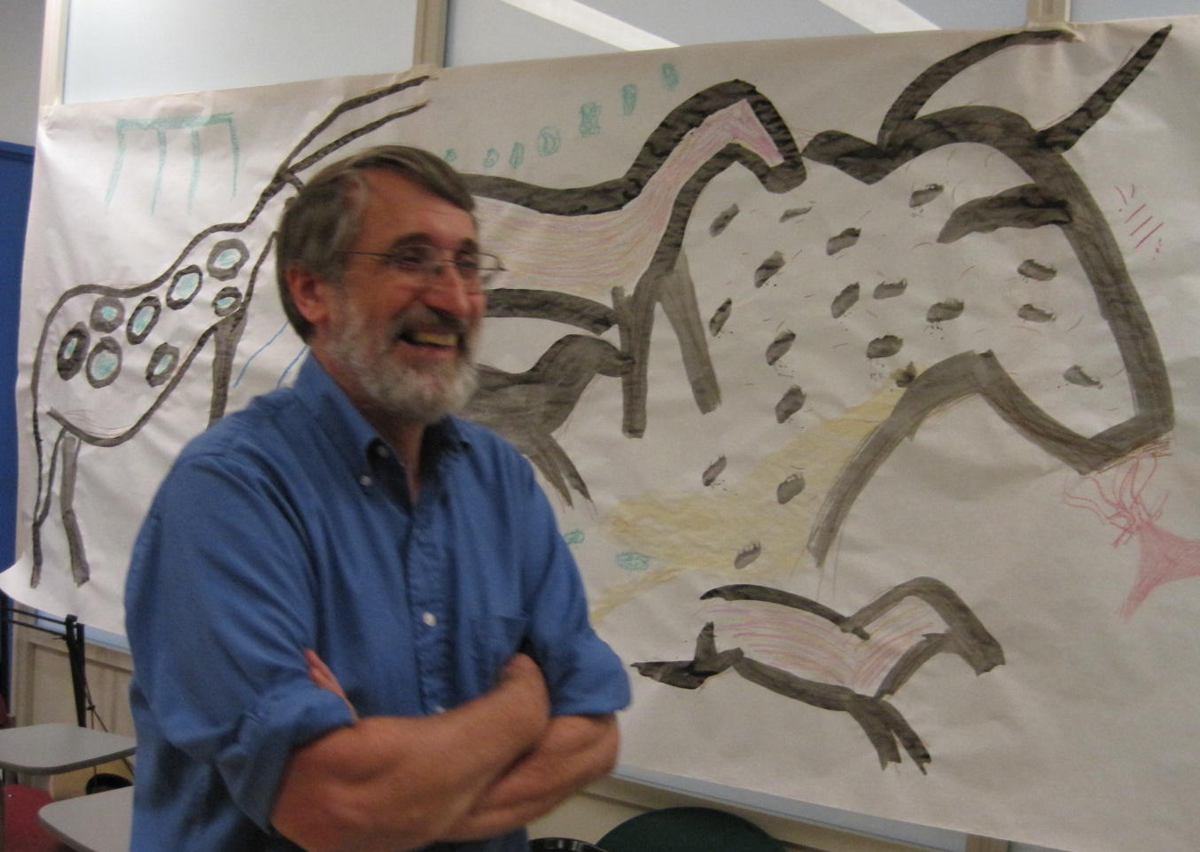 One of the other visitors was amused looking at the undersea panel, with octopus and duck.