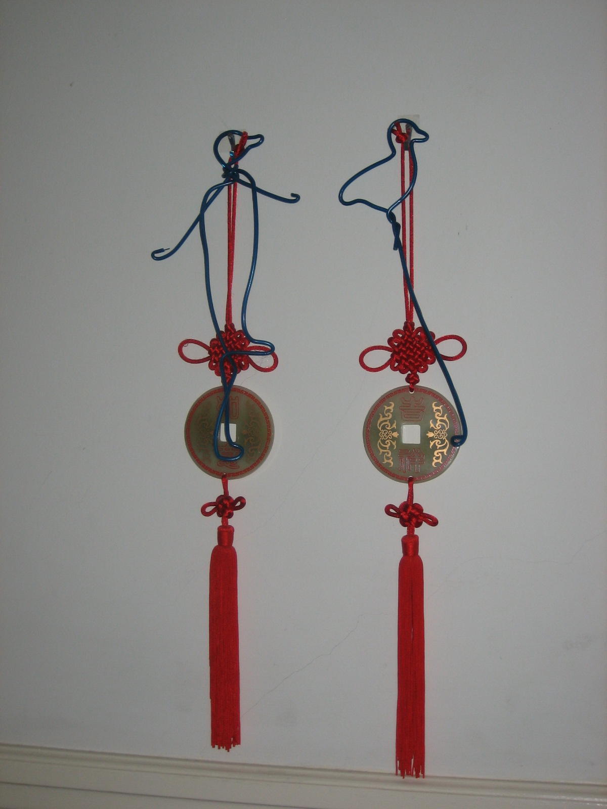 The wire sculptures were a bit stark on the wall by themselves, so I added some Chinese medallions.