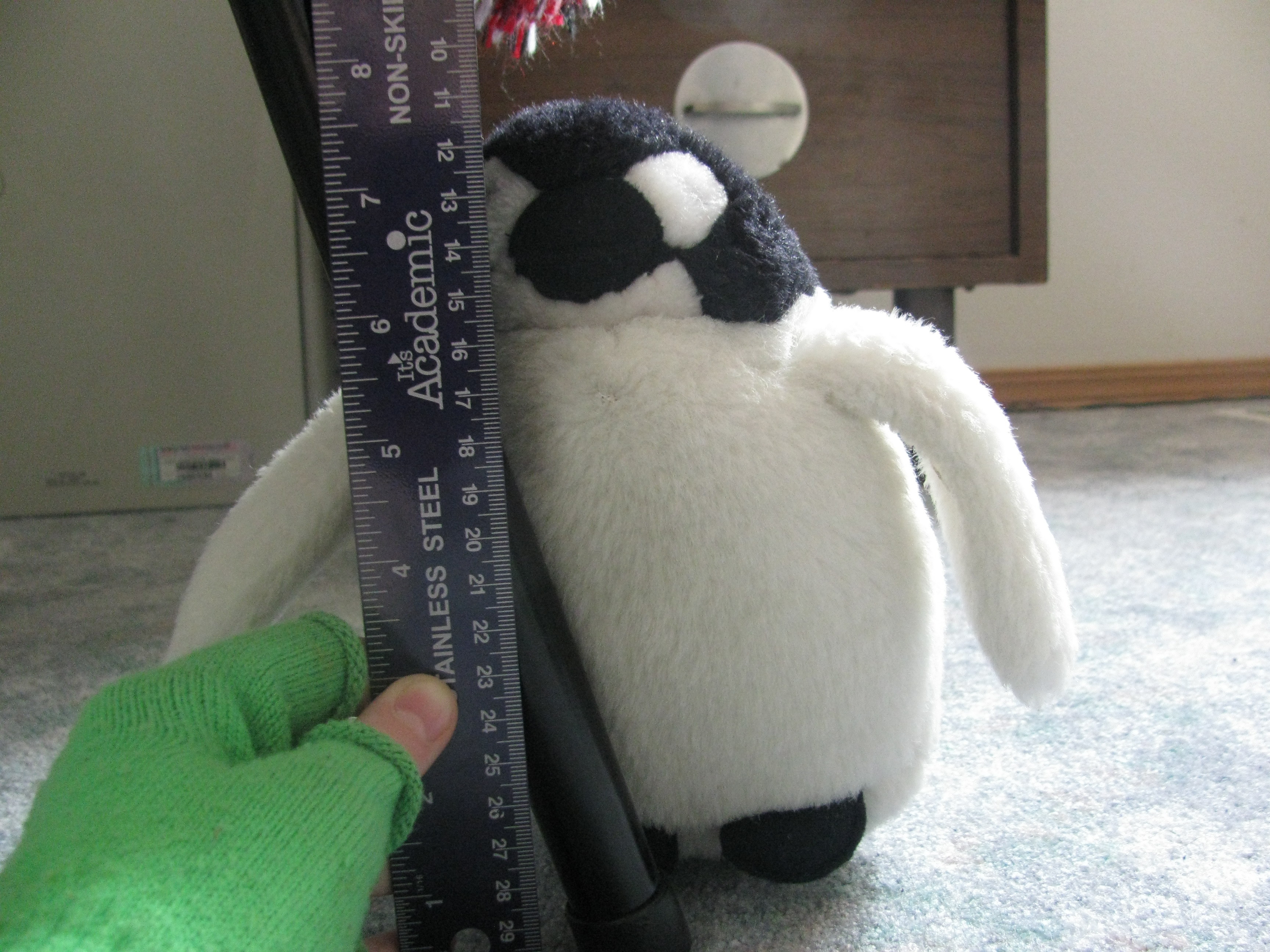 Ok so the penguin is roughly 7 and a half inches tall. multiply that by 10 and we have a 6'3" penguin on the way.