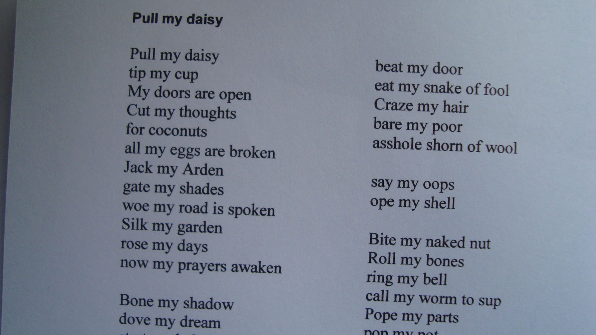 "Pull my daisy" one of my most favorite poems that Kerouac wrote. It's composed so it already has a built in rhythm.
